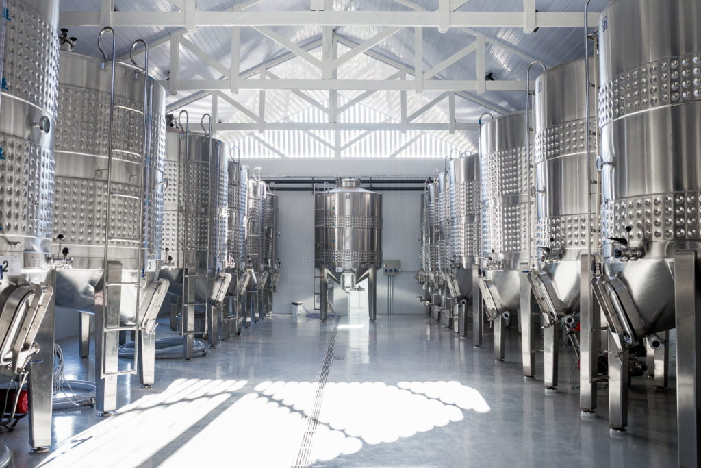 Tanques de vinificação da Vinícola Maria Maria, de Boa Esperança (MG)